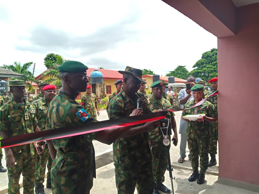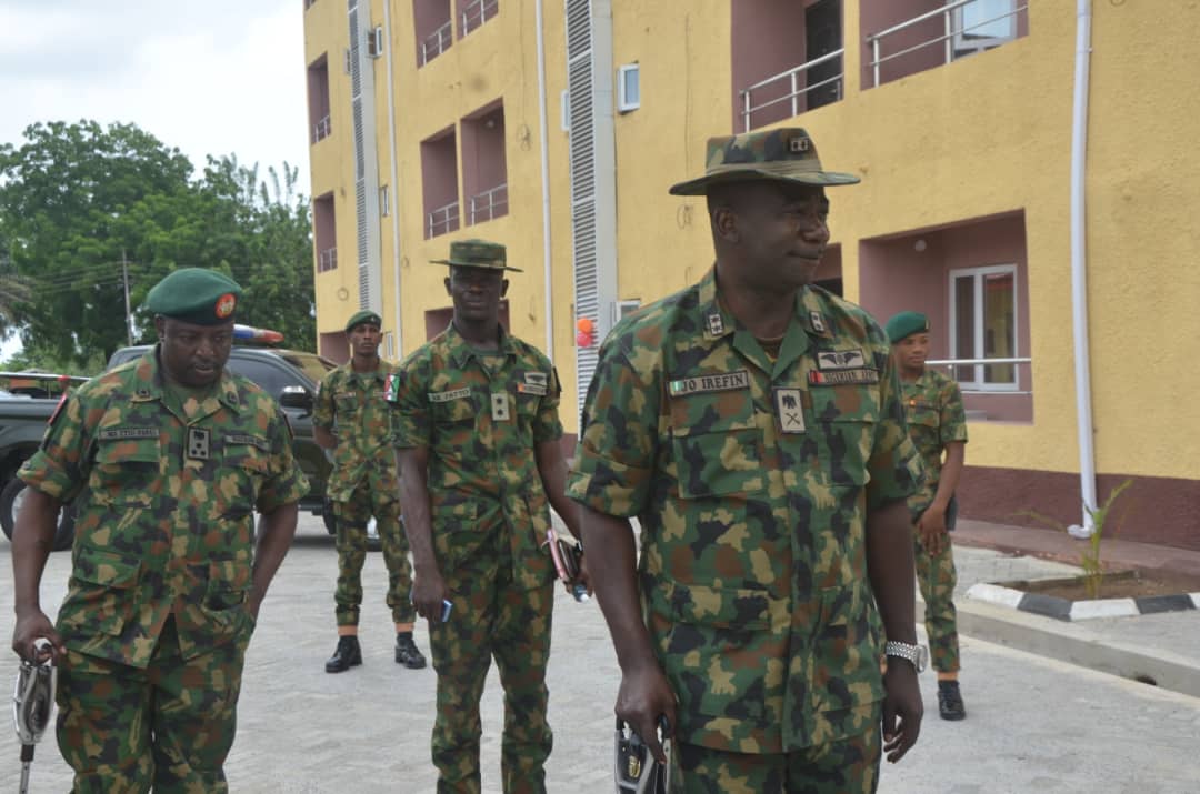 The Chief of Army Staff (COAS) Lt Gen Tukur Yusufu Buratai represented by the General Officer Commanding (GOC) 81 Division Maj Gen Olu Irefin has commissioned two blocks of 39 flats each, totalling 78 flats, at Nigerian Army Cantonment IKEJA, Lagos today the 31st of March 2020.
