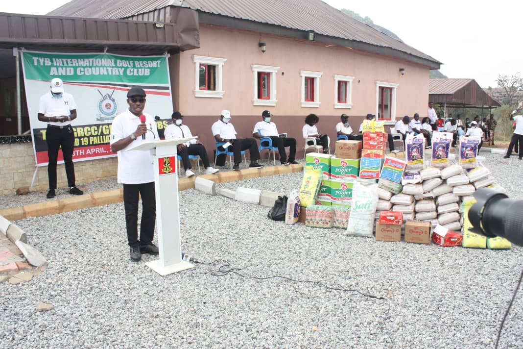 The Lt. Gen Tukur Yusuf Buratai (TYB) International Golf Club in conjunction with the Goodluck Ebele International Golf Club on Saturday 18th April 2020, presented 10 kilogram bag of rice each and other foodstuff among other palliatives to 150 Caddies from both clubs to cushion the negative effects of the COVID 19 pandemic lockdown on their families.